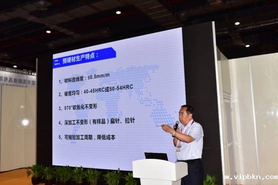 大连东非特钢制品有限公司总经理宁甲明作了“工模具钢预硬材的研发和应用”主题报告,他结合大连东非特钢的生产现状介绍了工模具钢预硬材产品的研发和应用。