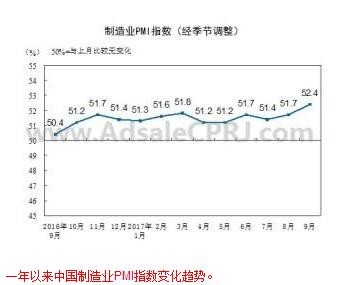 9月份,中国制造业PMI为52.4%,连续两个月上升,达到2012年5月以来的最高点,中国制造业继续保持稳中向好的发展态势,扩张步伐有所加快。