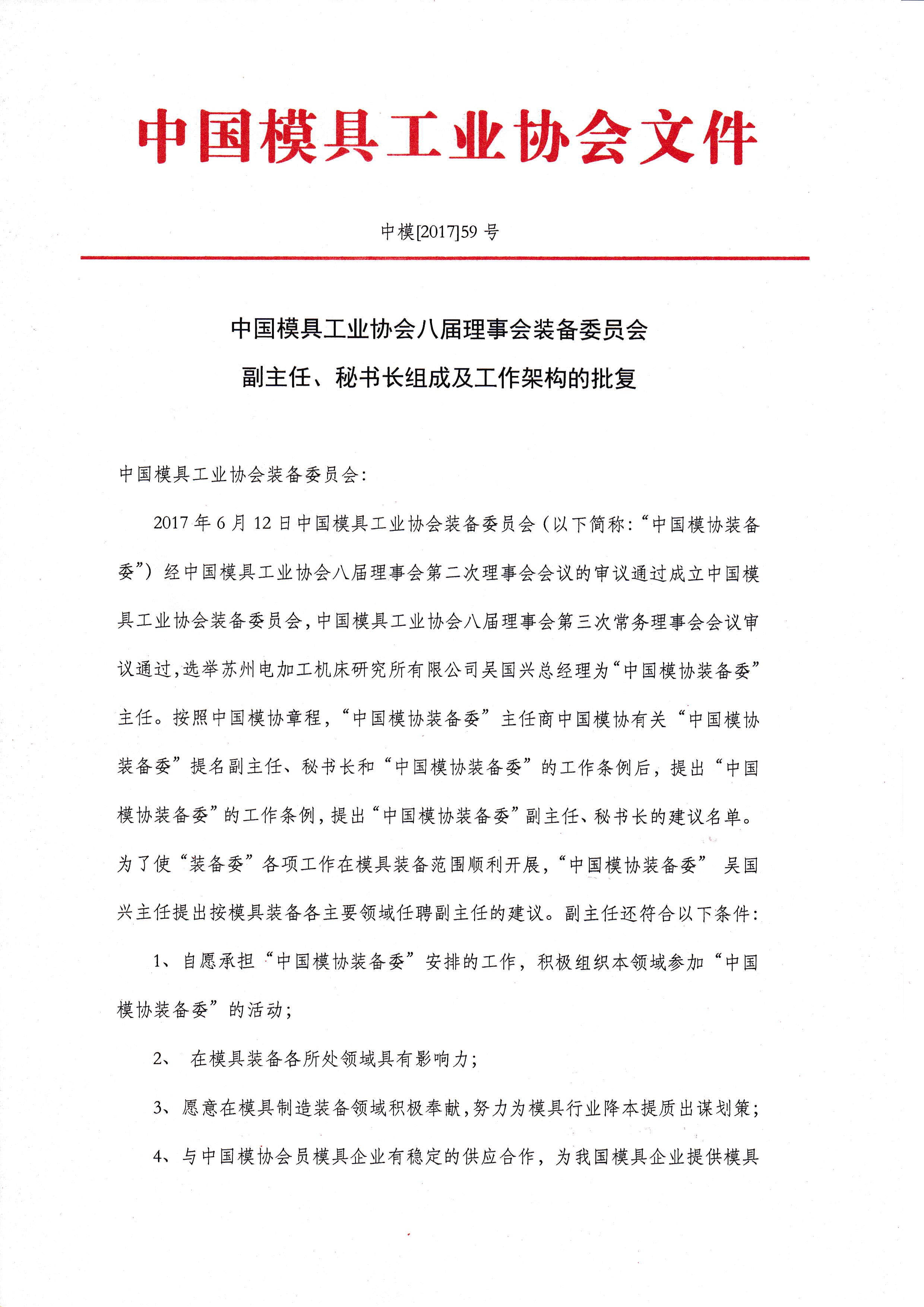 优米娱乐麻将装备委员会副主任、秘书长组成及工作架构的批复